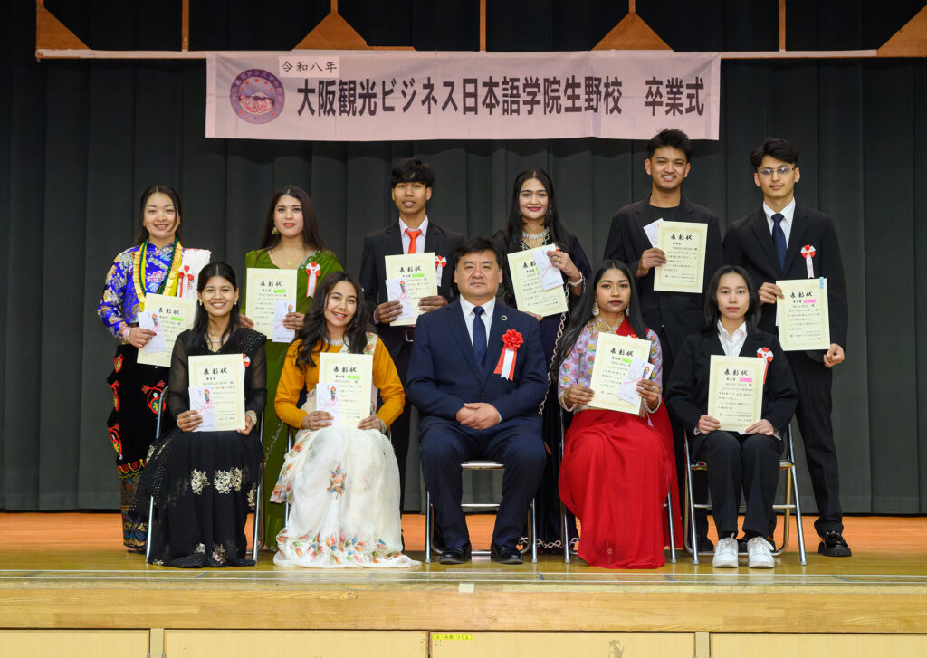 これから卒業生の皆さんは、それぞれ新しい道へと進んでいきます。日本でさらに学び続ける人、就職する人、母国へ戻り新しい挑戦を始める人など、進む道はさまざまですが、日本語学院で学んだ経験や努力した日々は、必ず皆さんの力になります。大阪観光ビジネス日本語学院で過ごした時間が、皆さんの未来を支える大切な礎となることを願っています。