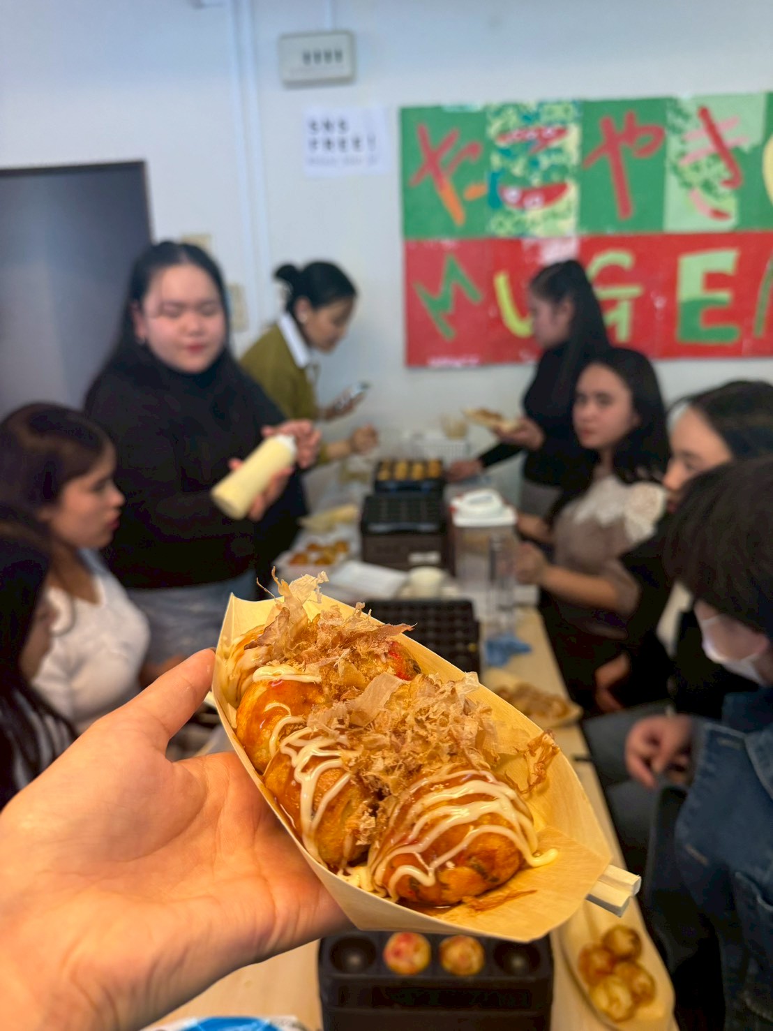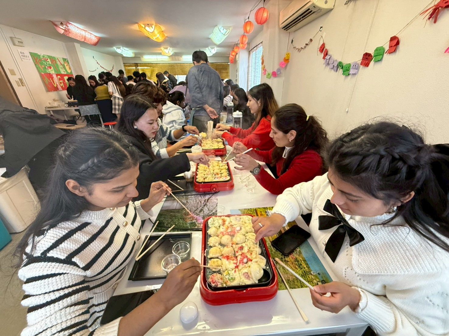 初めてたこ焼きを作る学生も多く、