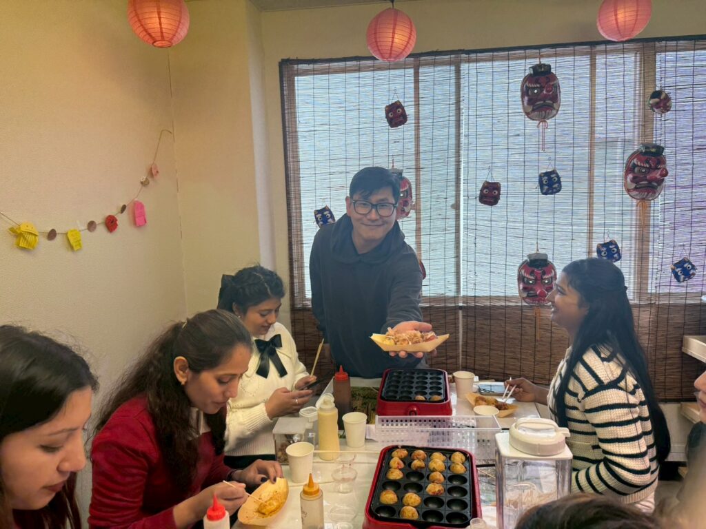 その後は、大阪名物・たこ焼きを実際に作ることができる